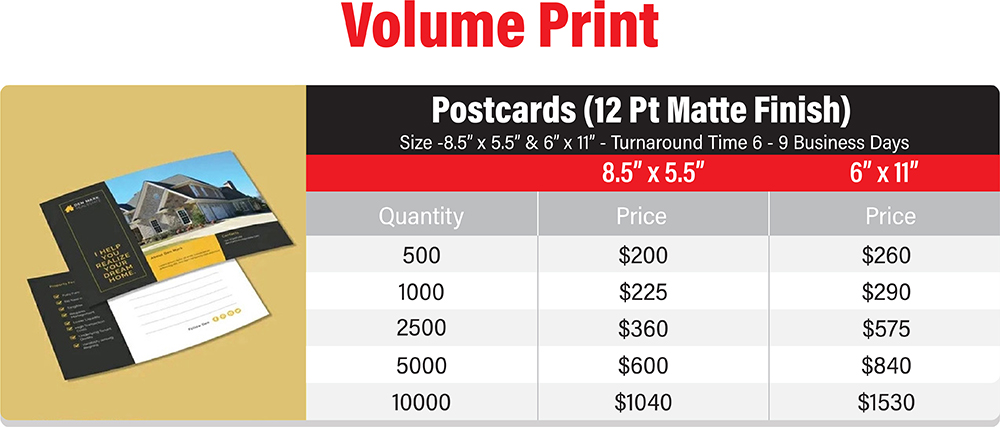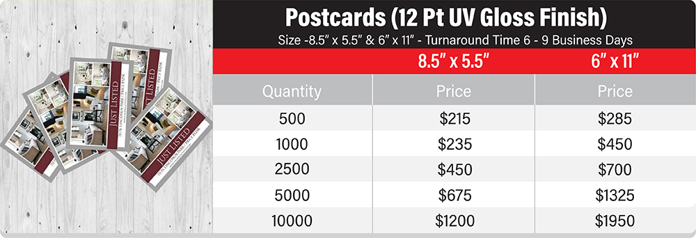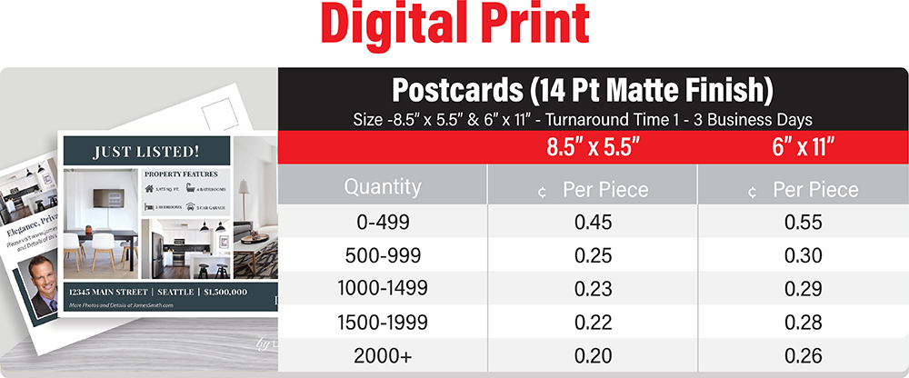Real Estate print marketing is a very saturated field and now more than ever realtors need to stand out from the crowd. Whether it is using real estate post cards and flyers to show just listed and just sold properties or folded brochures to send real estate newsletters to existing clients, our range of products ensures you get full colour, customized designs at the lowest prices in the industry. We offer a host of complimentary products for your real estate marketing materials and listing presentations such as pocket folders, letter head, envelopes, notepads, magnet cards, magnet calendars, and much more. Our low price guarantee ensures you will get the best price for your marketing materials and allow you to reach more potential clients than ever before. Our team of graphic designers are available to help you with your real estate designs and branding to ensure you get the best response from your marketing material by presenting your information in a professional manner with attractive designs. We understand real estate marketing and work with realtors to obtain and service their clients every step of the way.